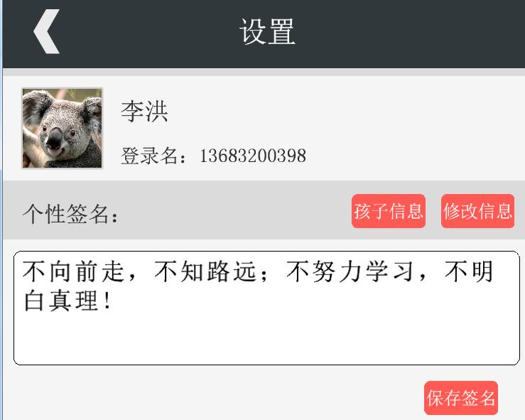 用户登陆手机客户端→设置→个性签名→输入你的新签名→保存签名。